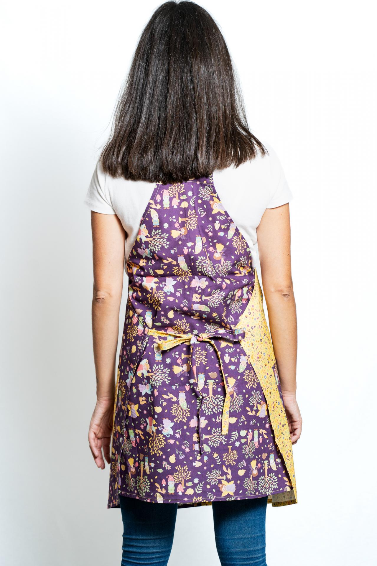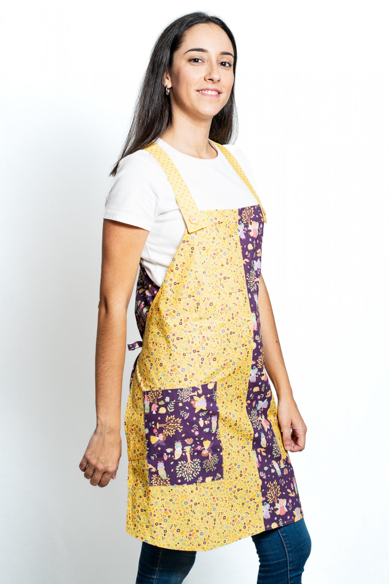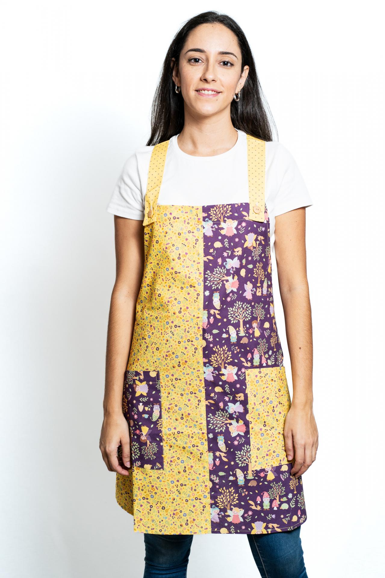 Cuadro delante y detrás combinado con tiras y bolsillo derecho y estampado delante y bolsillo.. Doble lazo delante y detrás. Talla única.