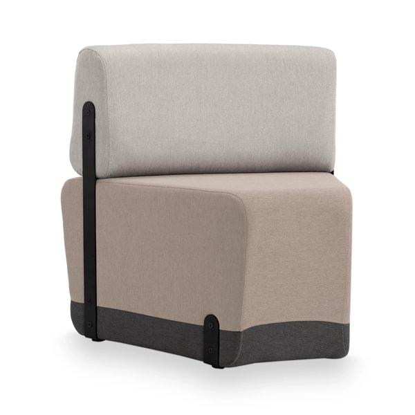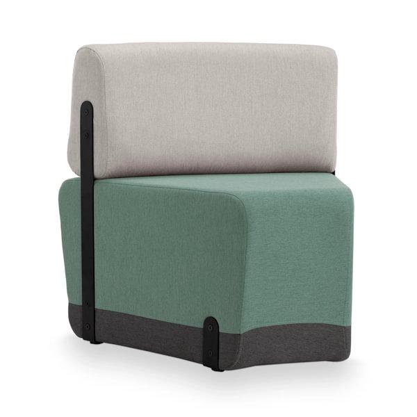 Sofá modular combinable, ideal para la creación y delimitación de espacios. Cómodo y versátil. Fabricado con estructura de madera, revestido con tejido acolchado y retardante al fuego.