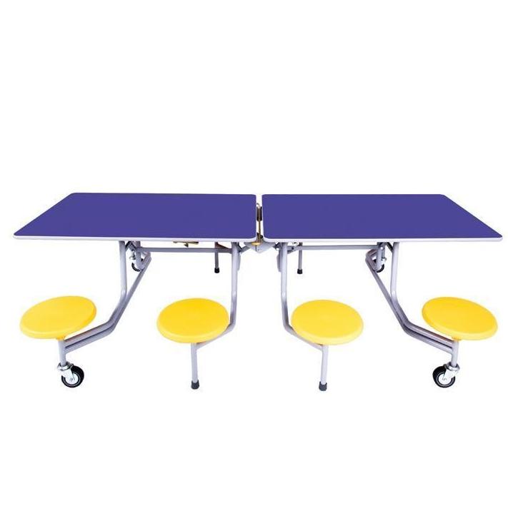 Con sus 8 taburetes fijos, la capacidad de su comedor aumentará en 25% -40% más que utilizando mesas con sillas. Una sola persona puede abrirla y cerrarla rápidamente. Eliminan el ruido de las sillas moviéndose y el bloqueo de los pasillos que suelen ocurrir con las sillas. Muy fácil de manejar, se pliega y rueda fácilmente y se anidan juntas para un almacenamiento compacto. Se mueve fácilmente para la limpieza del comedor.