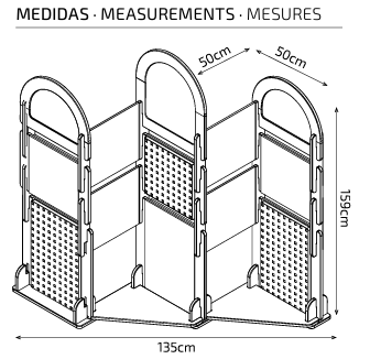 Tablero modular interactivo infantil, de 160 cm de altura, fabricado en madera contrachapada. Incluye ganchos, pinzas y bandejas móviles y combinables, que se integran fácilmente en la estructura perforada del tablero. Su diseño es ideal para aulas y espacios educativos en escuelas infantiles, fomentando el juego, la creatividad y la exploración por parte de los más pequeños.