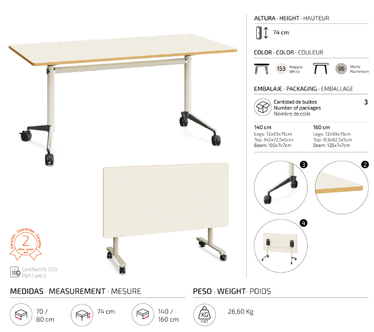 Mesa escolar abatible con estructura metálica y acabado en madera de arce que combina funcionalidad y diseño en entornos educativos. Incorpora ruedas con freno y un sistema plegable, ideal para aulas y salas multiusos. Su diseño permite un fácil almacenamiento y favorece la creación de espacios flexibles. Perfecta para escuelas infantiles, colegios y centros que apuestan por un aprendizaje activo y versátil.