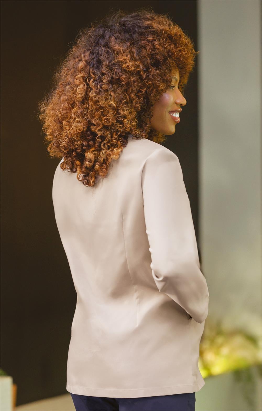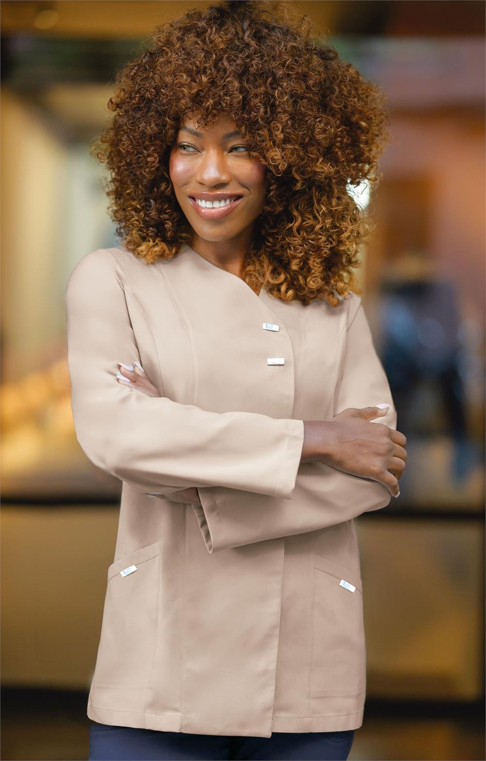 Casaca sanitaria microfibra señora con broches en manga larga beige