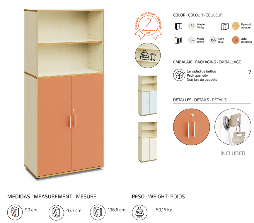 - Puertas disponibles en tres colores