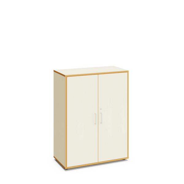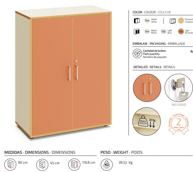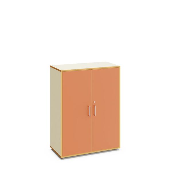 Armario escolar de 120 cm de altura, con acabado en madera de arce. Dispone de dos puertas y 3 espacios interiores para almacenamiento. Ideal para equipar aulas en centros educativos.