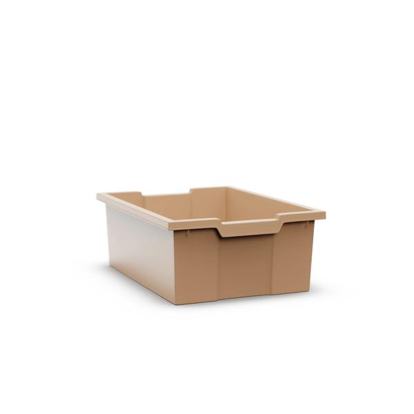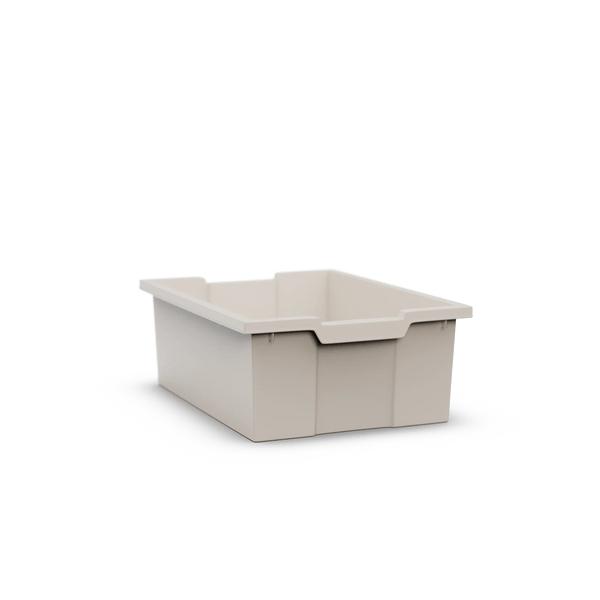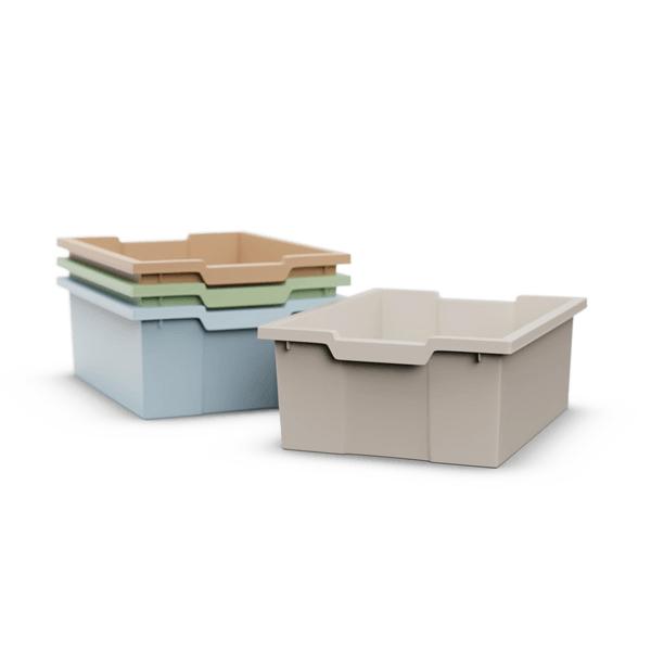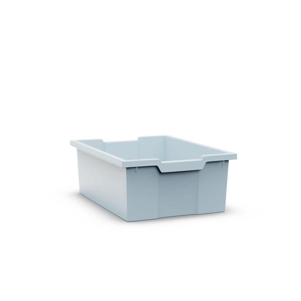 Cubeta grande de plástico con alas reforzadas. Ideal como complemento para aulas de aprendizaje cooperativo o para su uso en armarios escolares. Su base cuenta con líneas en relieve que reducen la fricción sobre las superficies de trabajo. La parte frontal tiene un diseño especial que facilita la extracción de la bandeja, además de topes que evitan que se empuje hacia el interior.