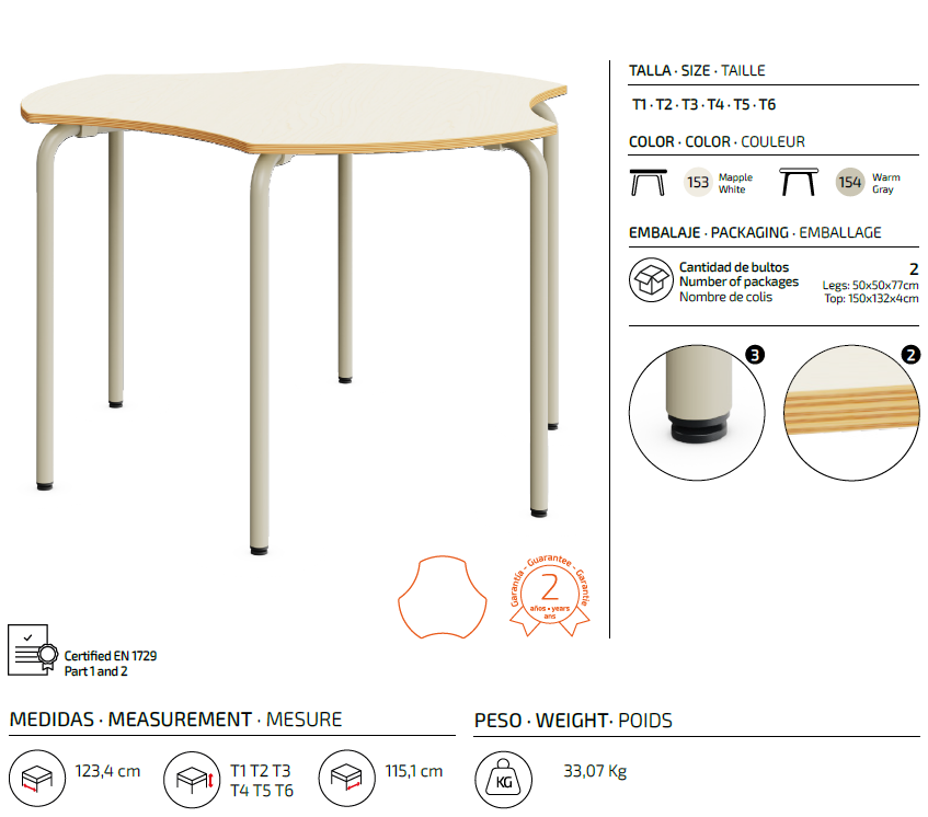 - Disponible en tallas 1, 2, 3, 4, 5 y 6
