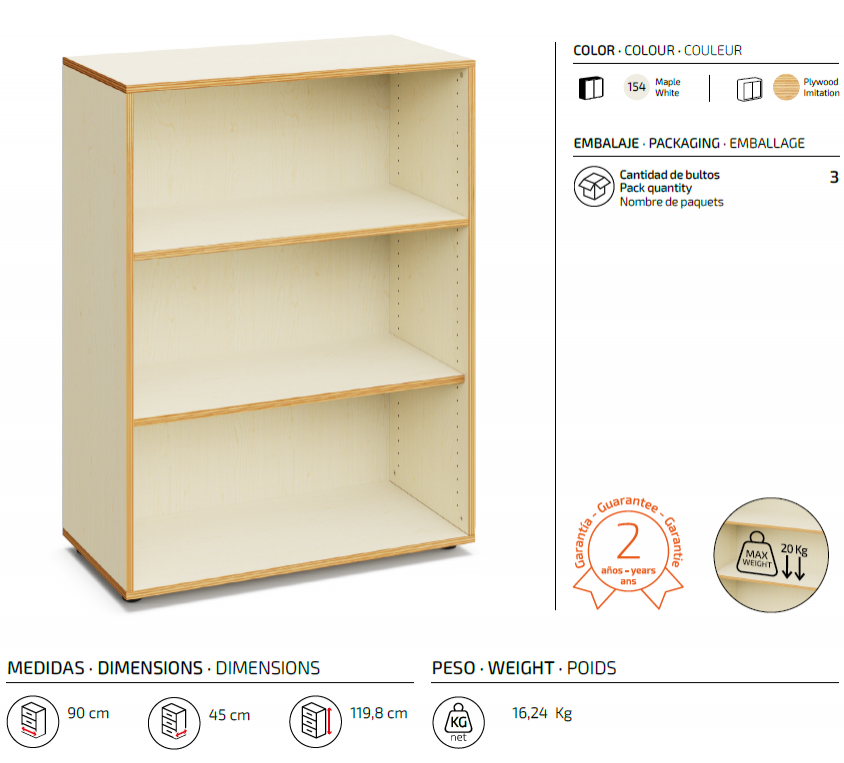 Armario escolar de 120 cm de altura, con acabado en madera de arce. Dispone de 3 espacios interiores para almacenamiento. Ideal para equipar aulas en centros educativos.