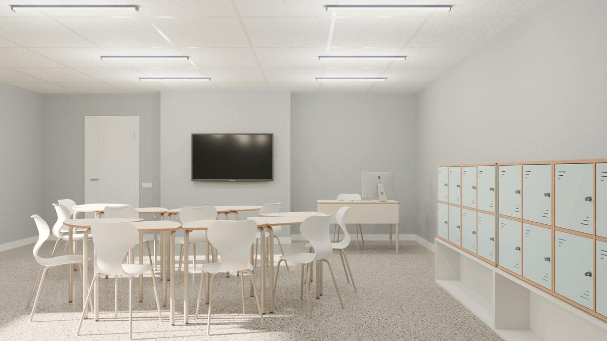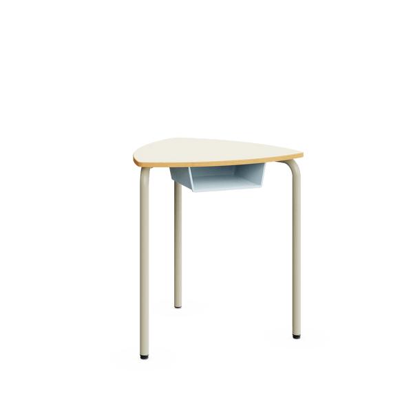 Pupitre escolar con estructura metálica y acabado en madera de arce. Su forma permite distintas combinaciones para trabajar en grupo o individualmente. Ideal para equipar aulas de aprendizaje cooperativo.