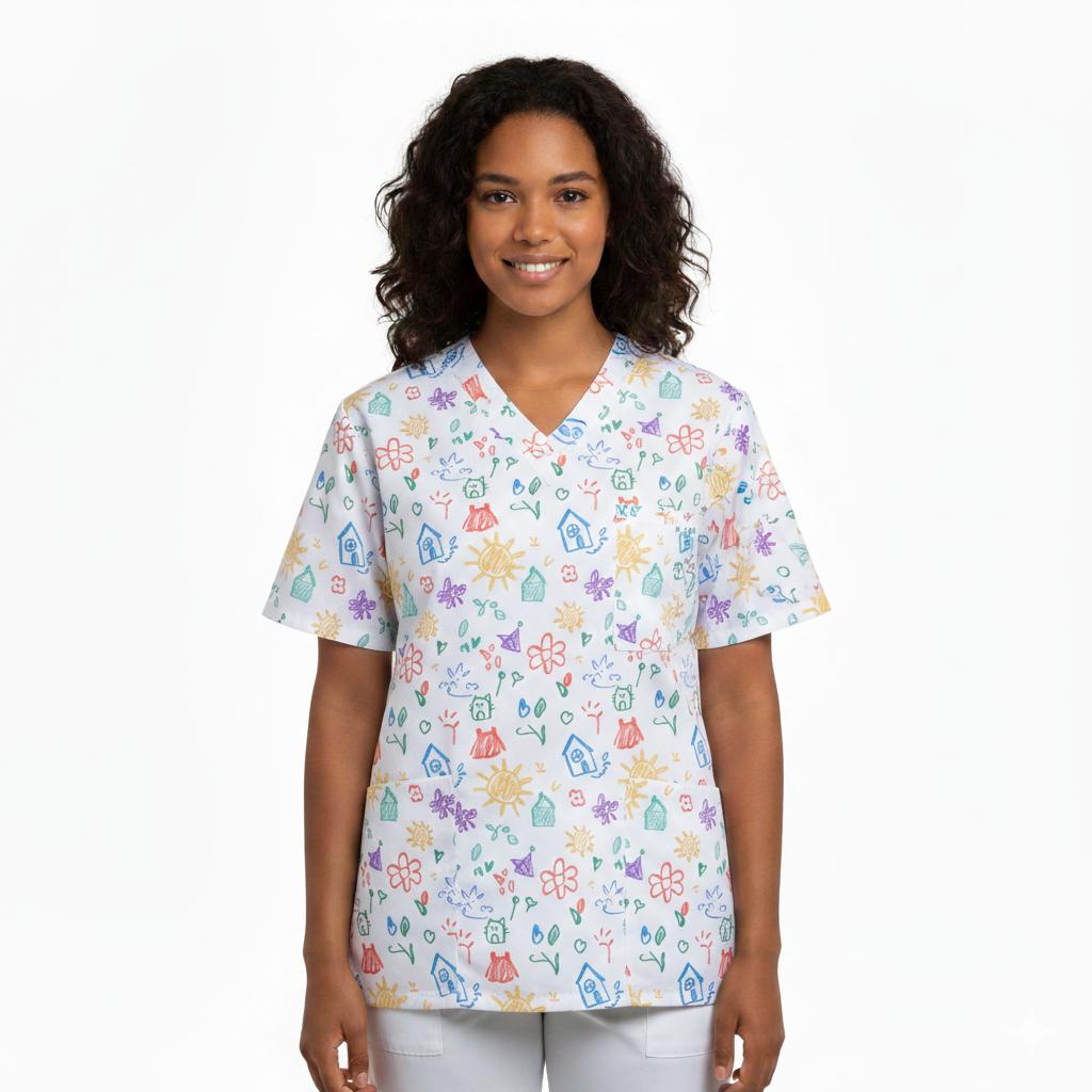 La blusa unisex Mika Crayon es una prenda versátil diseñada para ofrecer confort y libertad de movimiento durante toda la jornada laboral. Su escote en pico y manga corta la convierten en una opción práctica y fresca para profesionales de sectores como la salud, la estética o el bienestar.