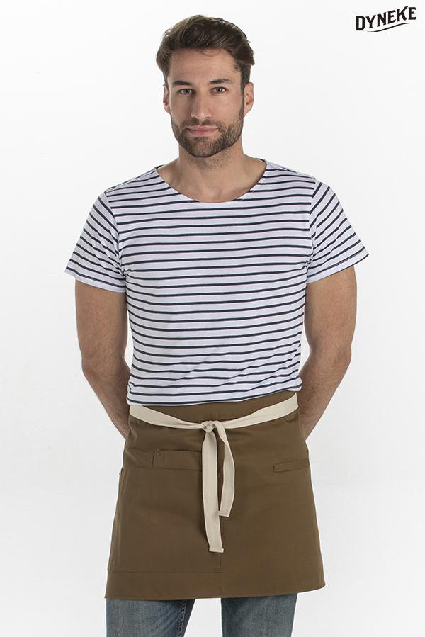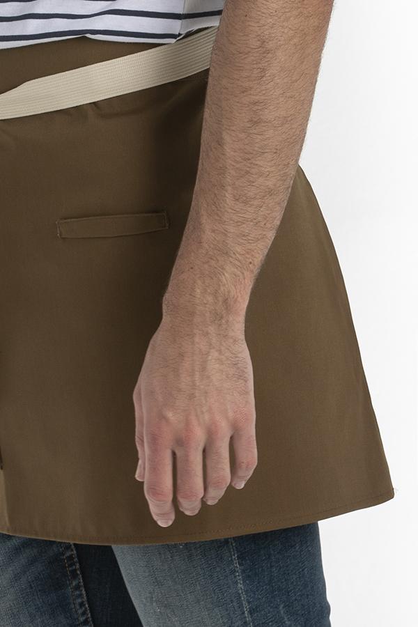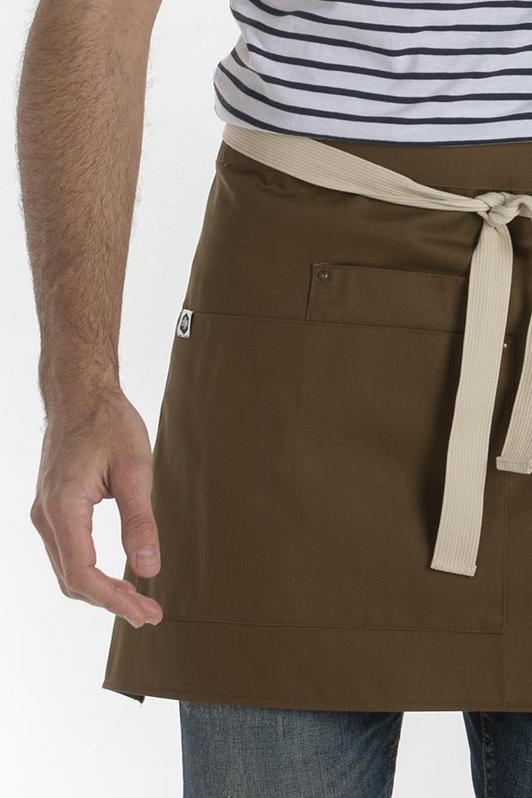 Delantal corto marrón bolsillos