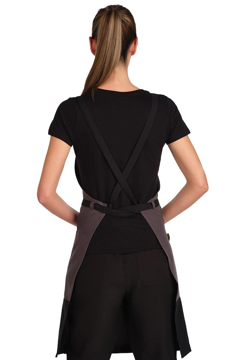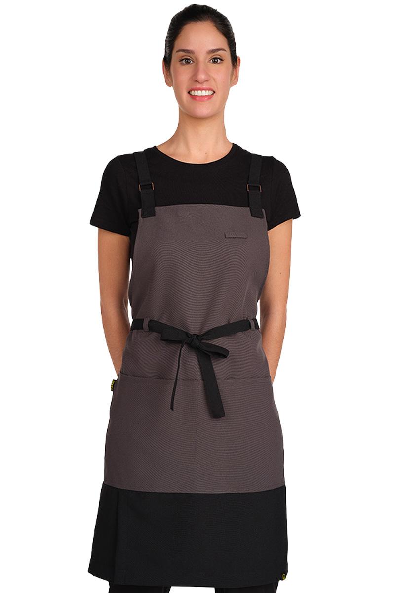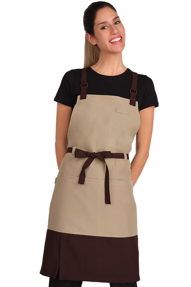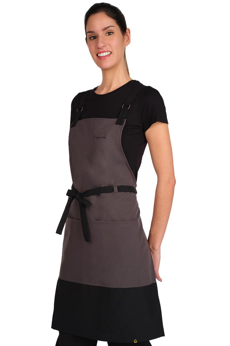Delantal bicolor, una pieza que combina un diseño moderno con la máxima funcionalidad.