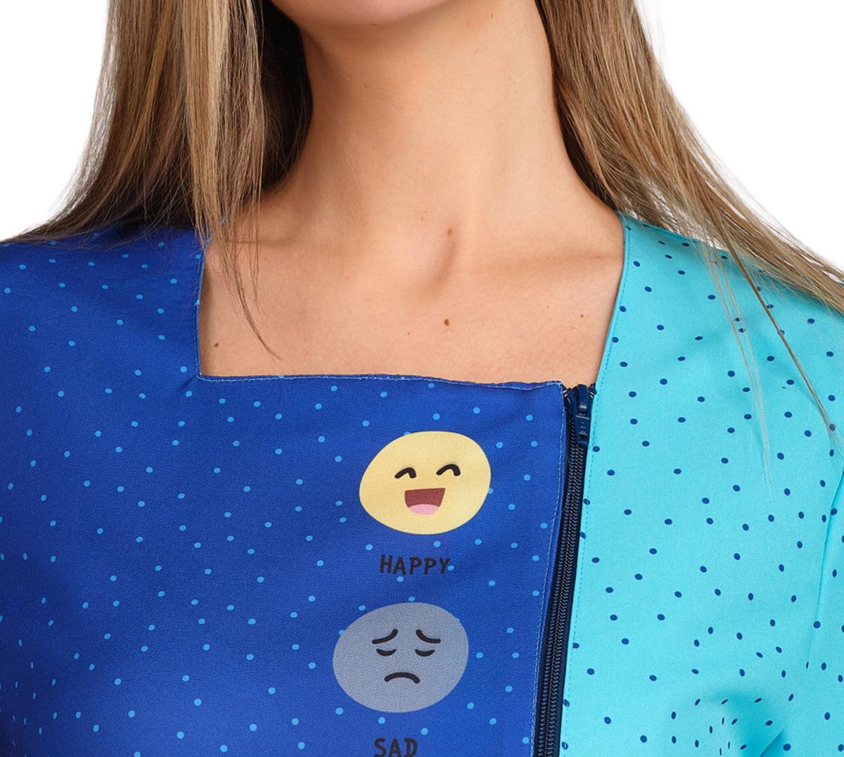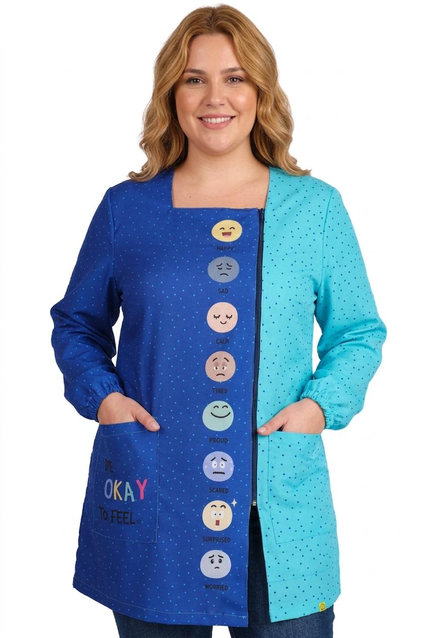 Transforma tu jornada escolar con nuestra bata para profesora, una prenda diseñada para ser mucho más que un uniforme.Con un dulce diseño a topos, esta bata destaca por su estampado central interactivo protagonizado por divertidos emojis de sentimientos.