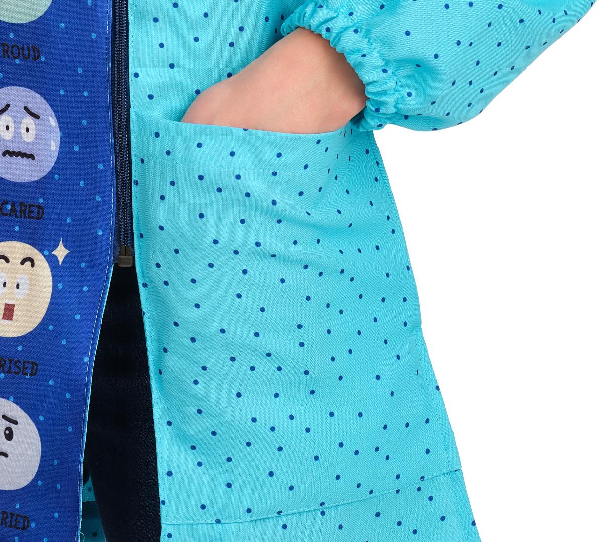 Se abrocha de forma rápida y sencilla mediante una cremallera lateral delantera, manteniendo una estética pulida. Sus mangas largas con goma en el puño garantizan un ajuste perfecto, permitiéndote trabajar con total libertad en manualidades o juegos.Cuenta con 3 prácticos bolsillos de gran capacidad para que nunca te falte espacio para tus materiales esenciales.