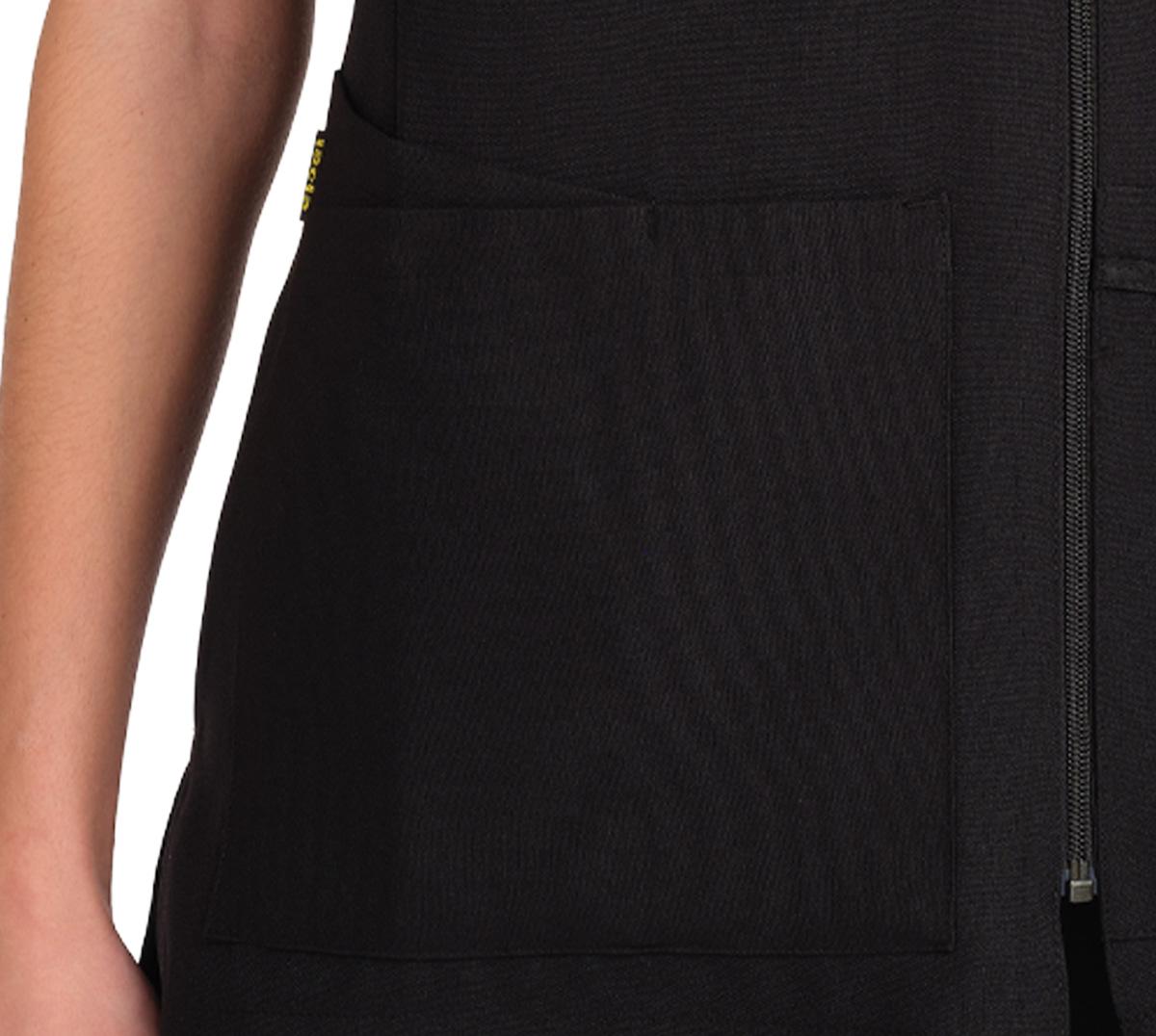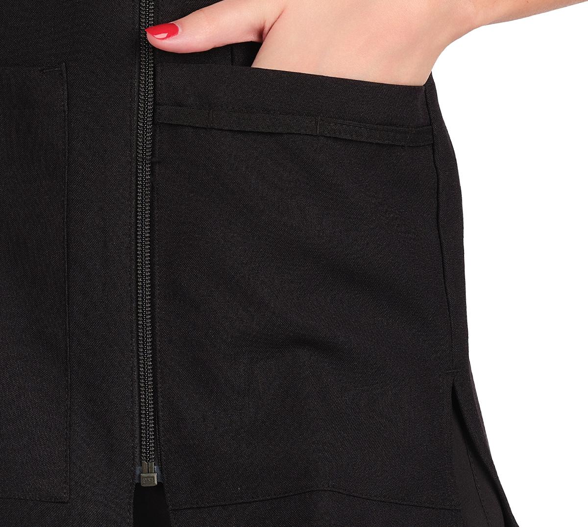 Cremallera lateral y dos bolsillos uno superior y otro inferior.