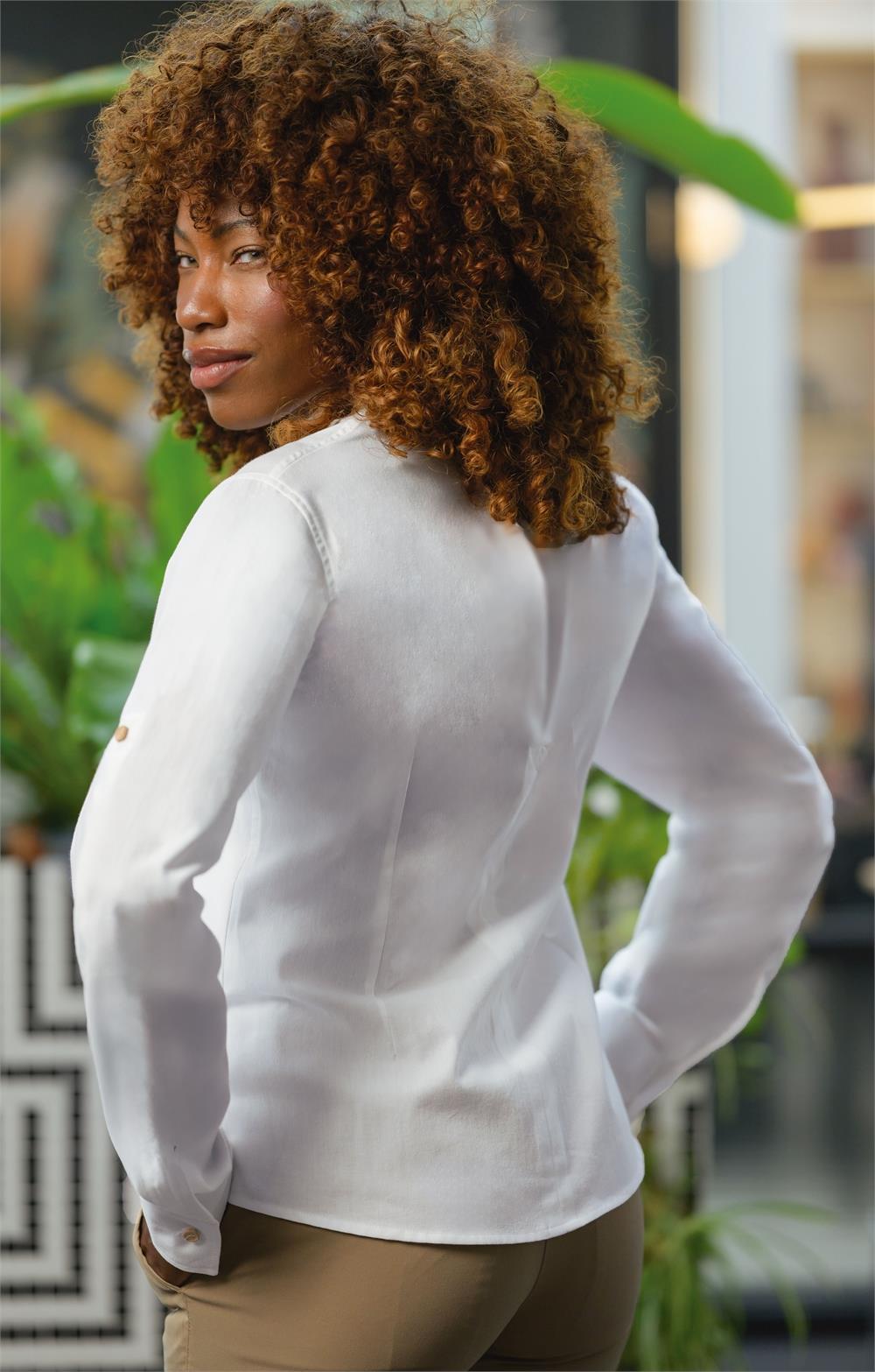 Camisa -Estilo lino -Fuelle en la espalda -Recoge mangas y cuello fantasía