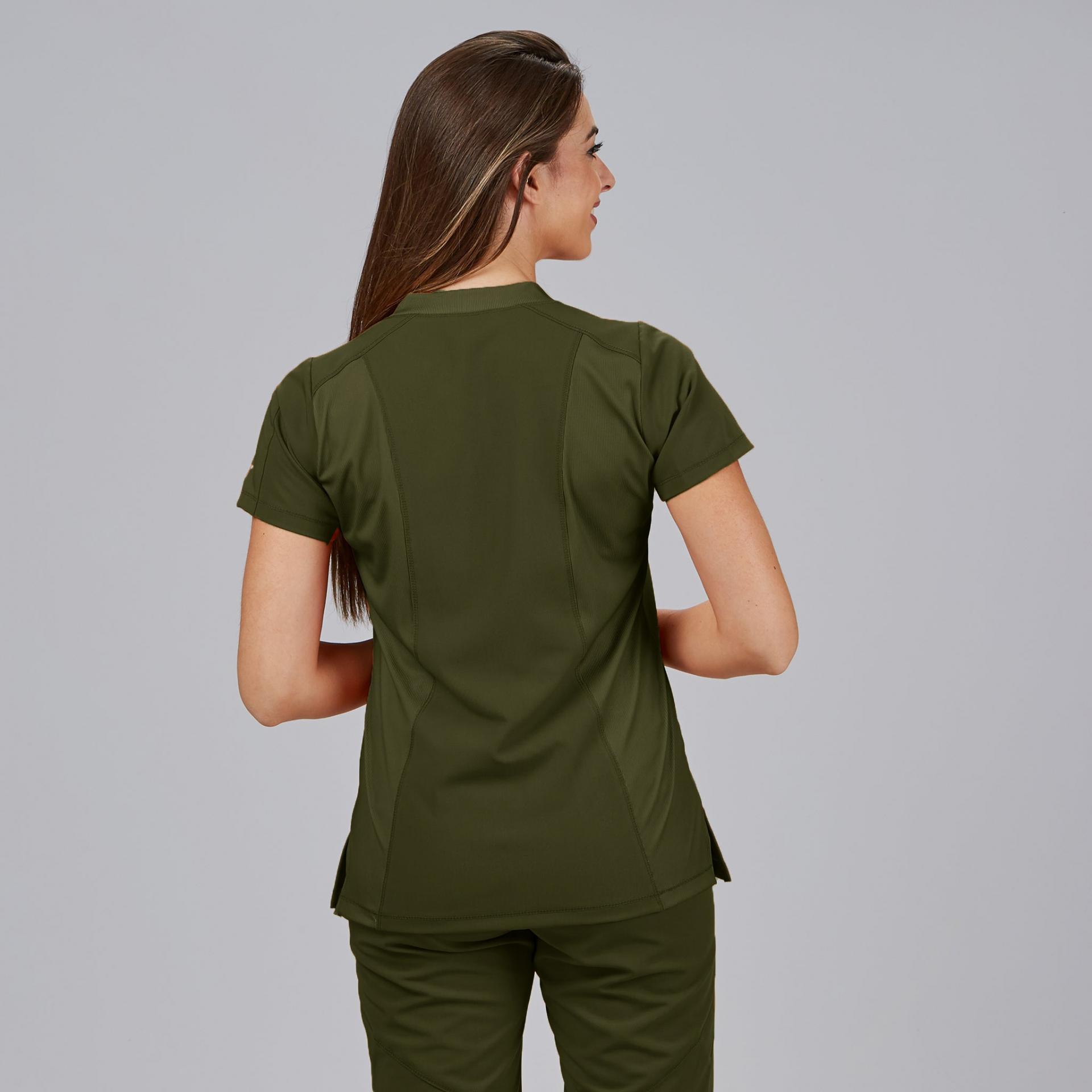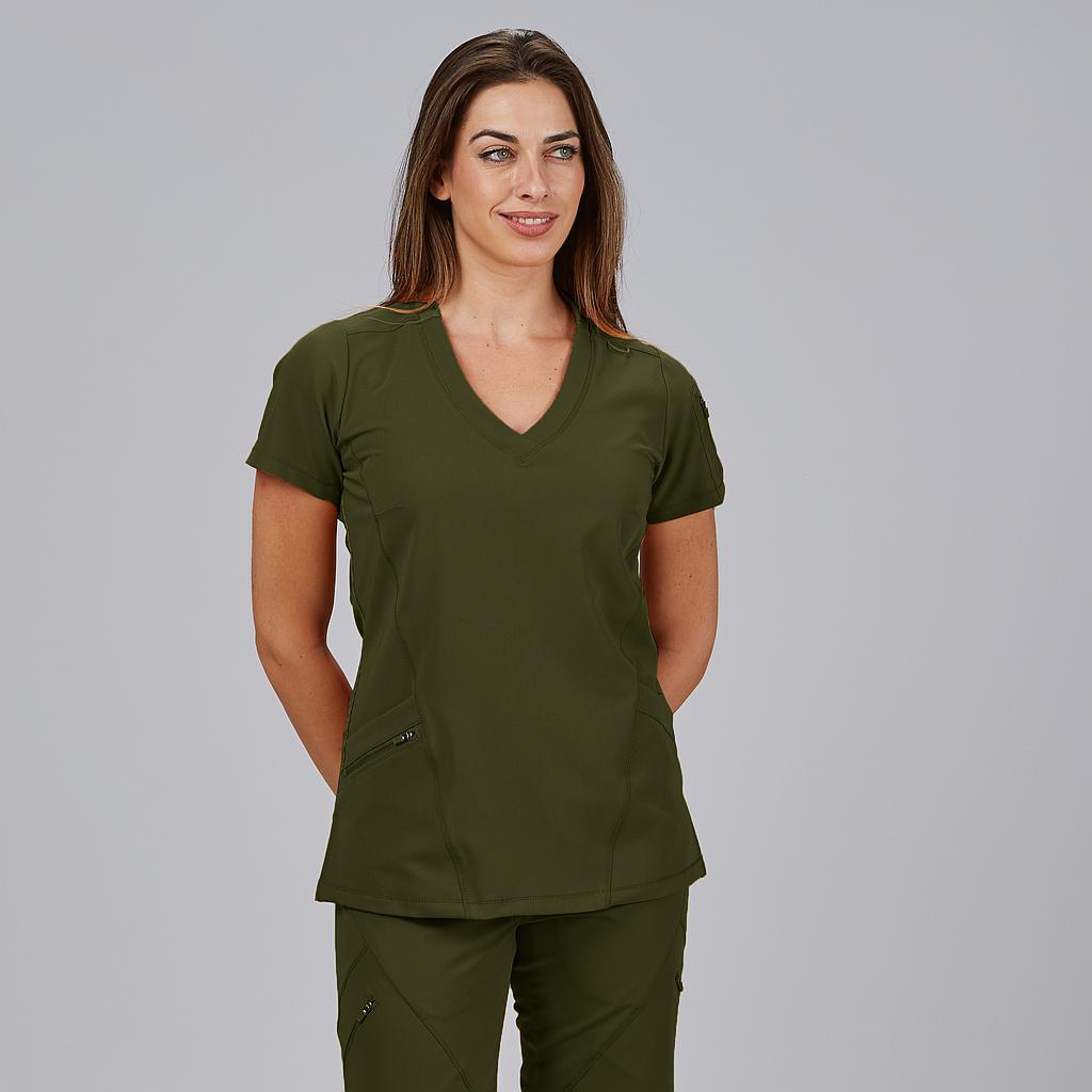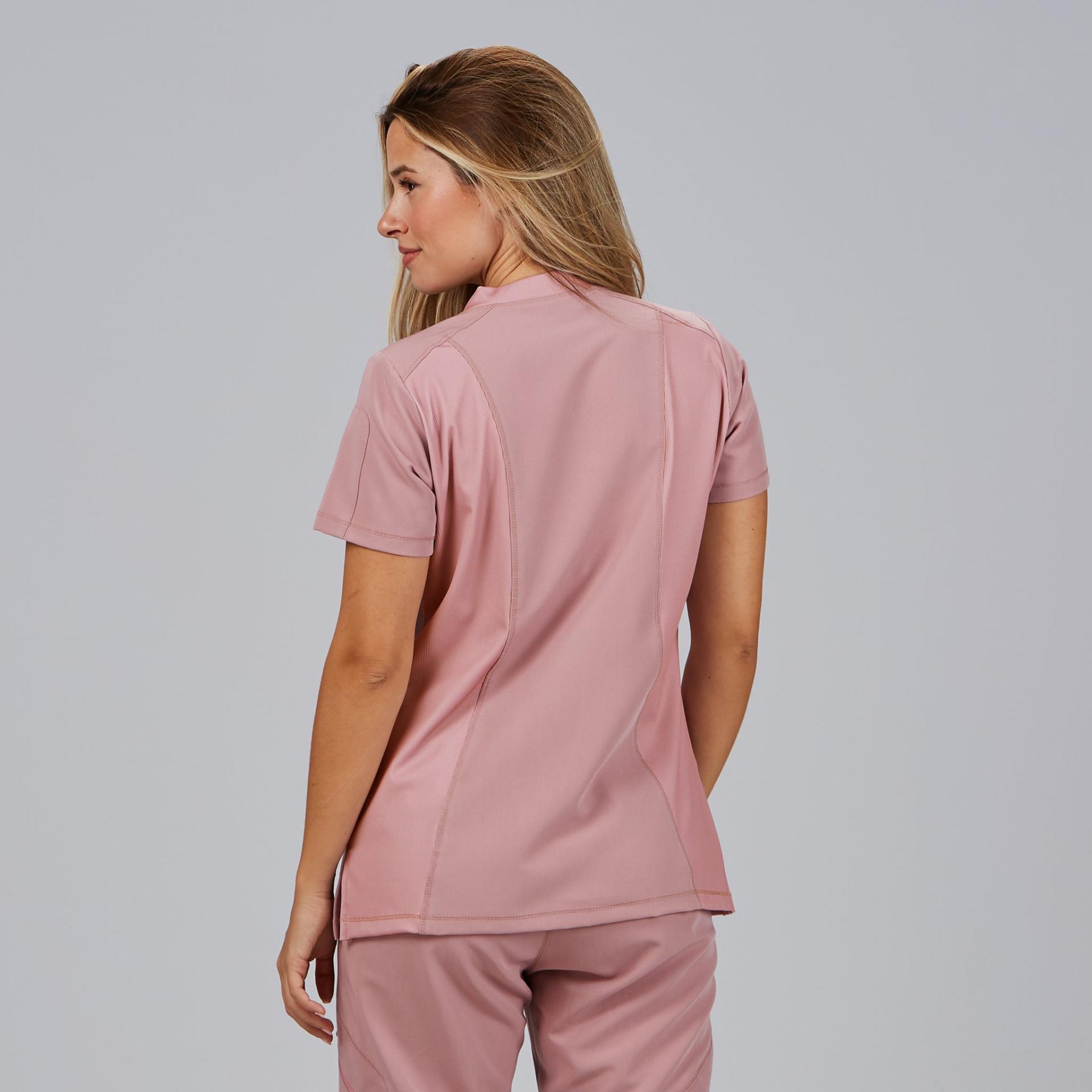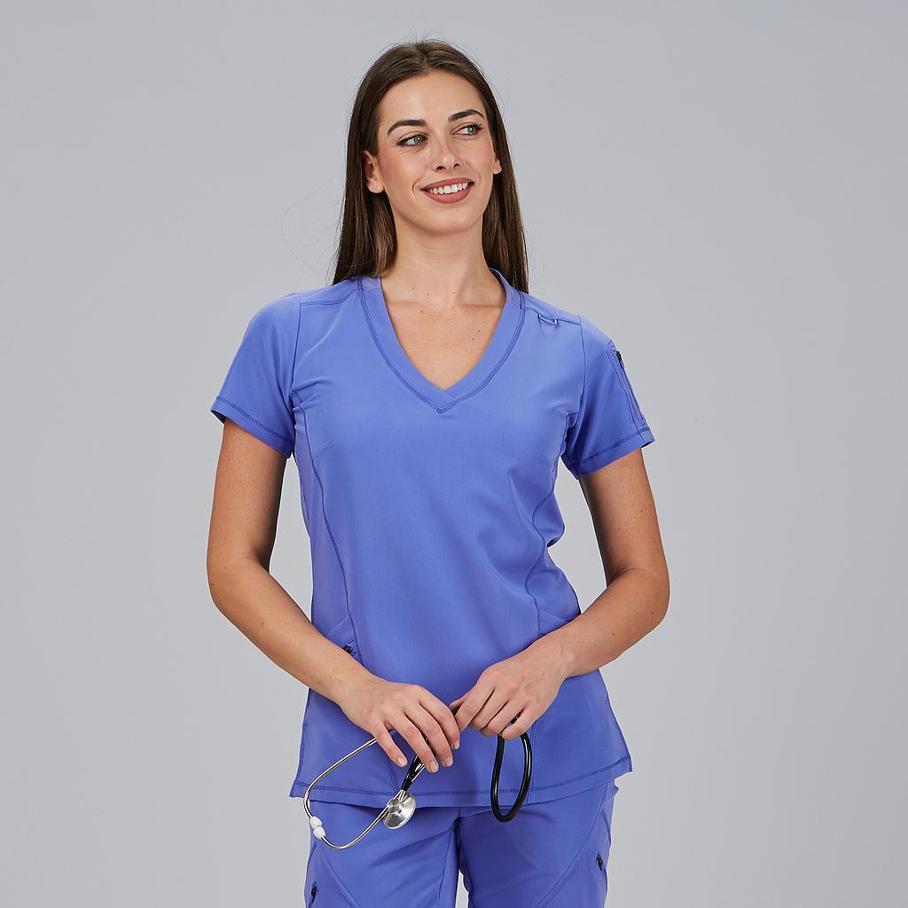 La Blusa Mujer Cuello Canalé M/C NANCY es una prenda profesional que combina comodidad, diseño moderno y tejido sostenible, ideal para mujeres que trabajan en sanidad, clínicas, farmacia, estética o laboratorios. Su corte semi ajustado (M2) y su largo de 67 cm aprox. proporcionan un ajuste ergonómico y favorecedor para el día a día.