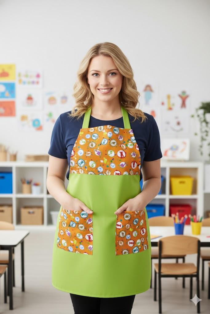 Casulla círculos, con tirantes, dos bolsillos estampados.