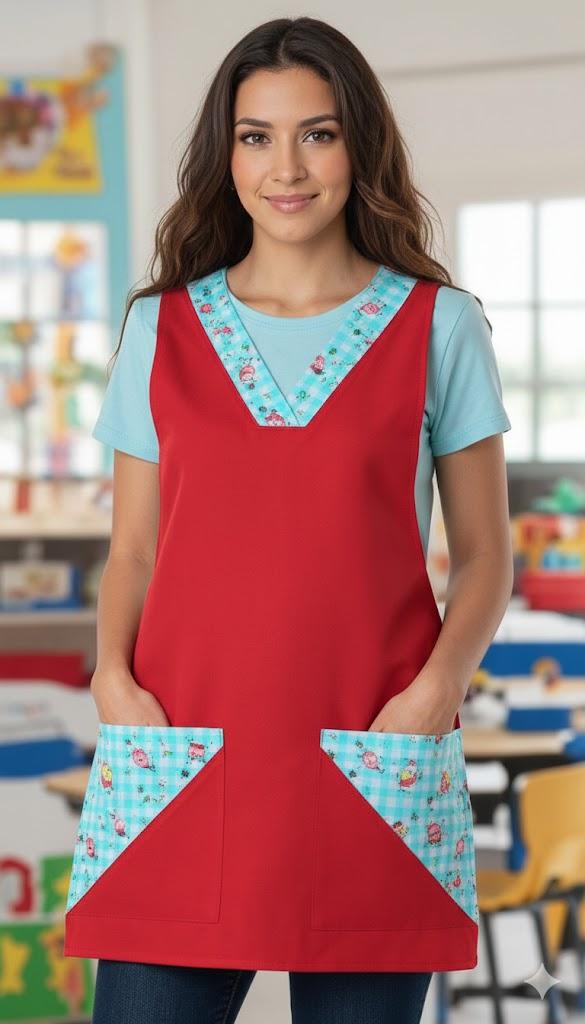 Casulla pico color rojo, dos bolsillos estampados.